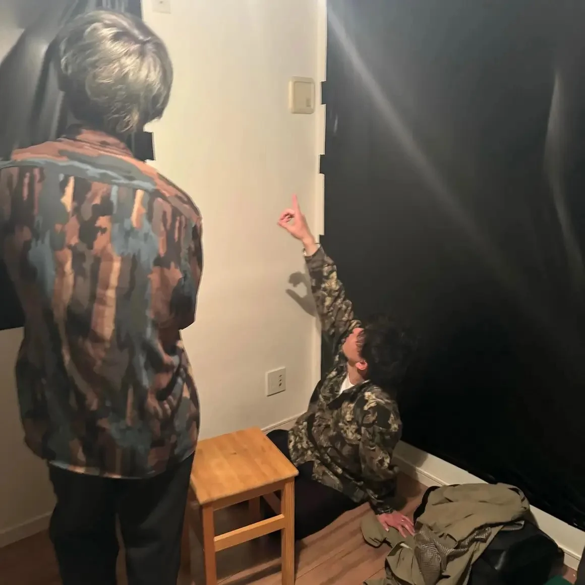 誕生日の翌朝を箱のなかで迎えながら、内壁に絵を描いていました。